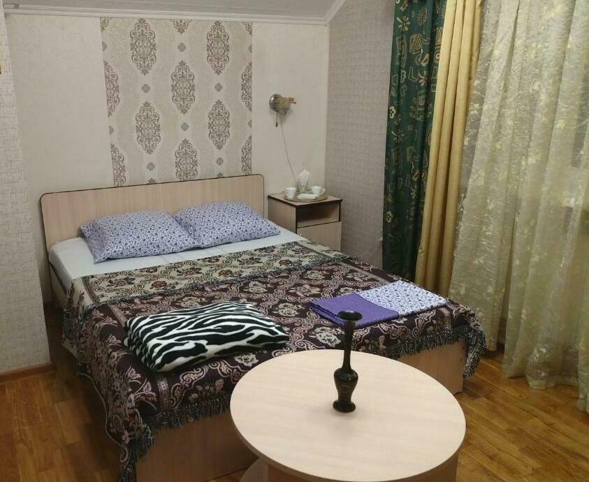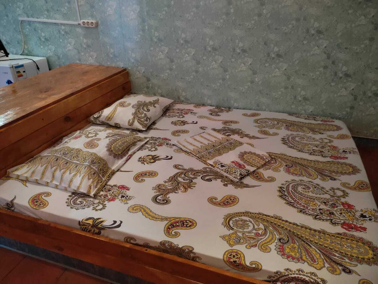 Одна двуспальная кровать, кондиционер, телевизор, журнальный столик и ванная комната рядом, на два номера.