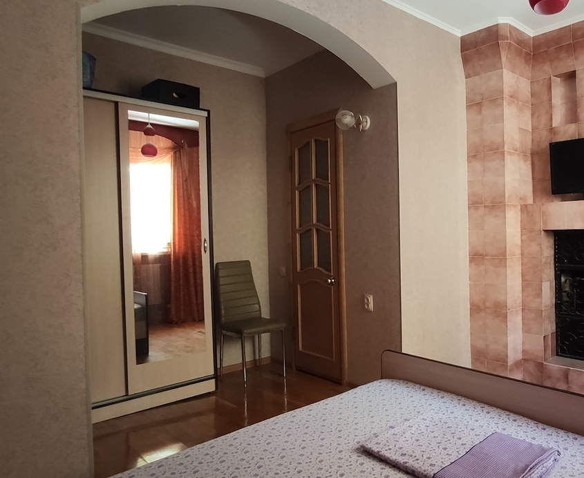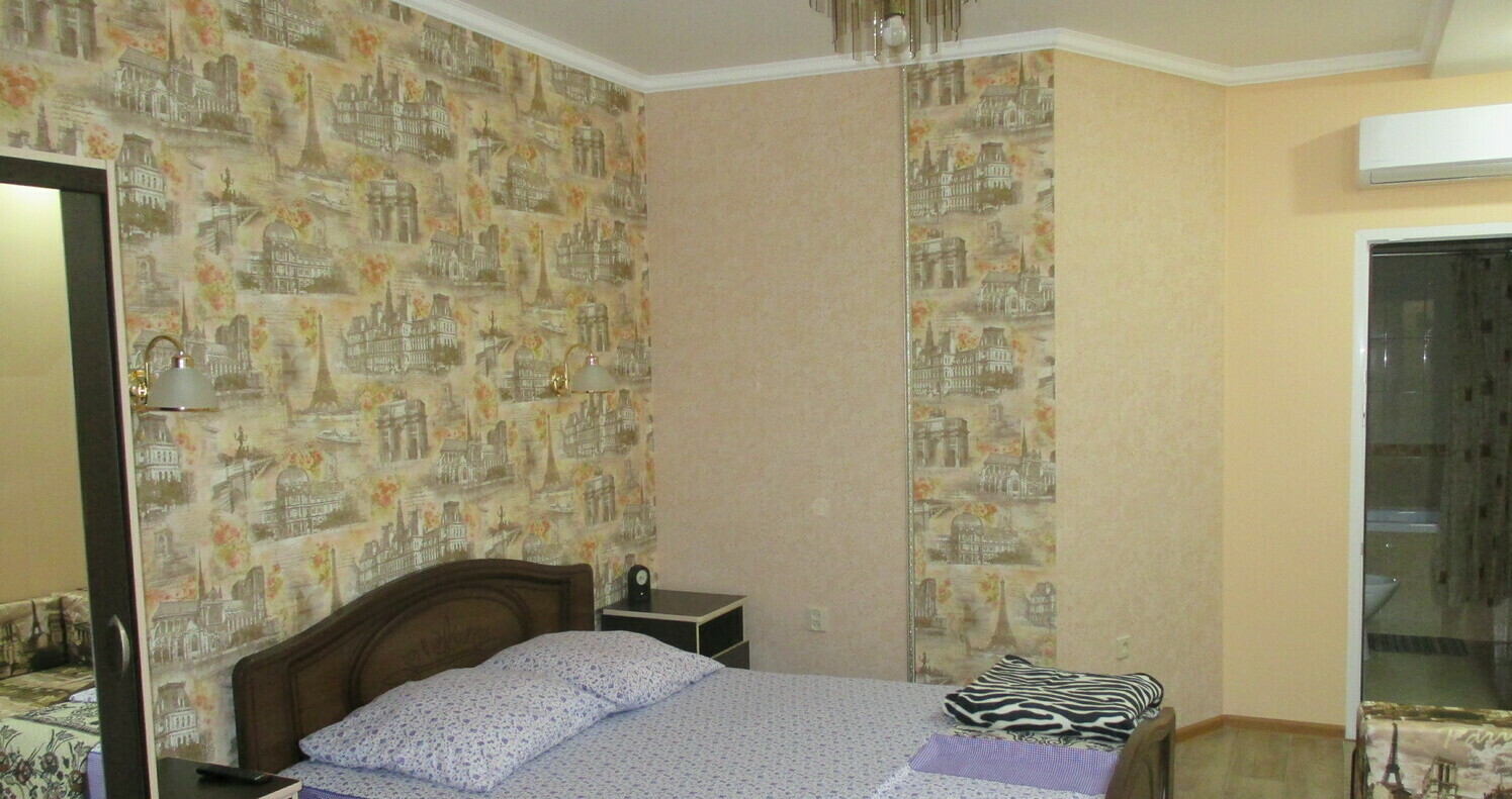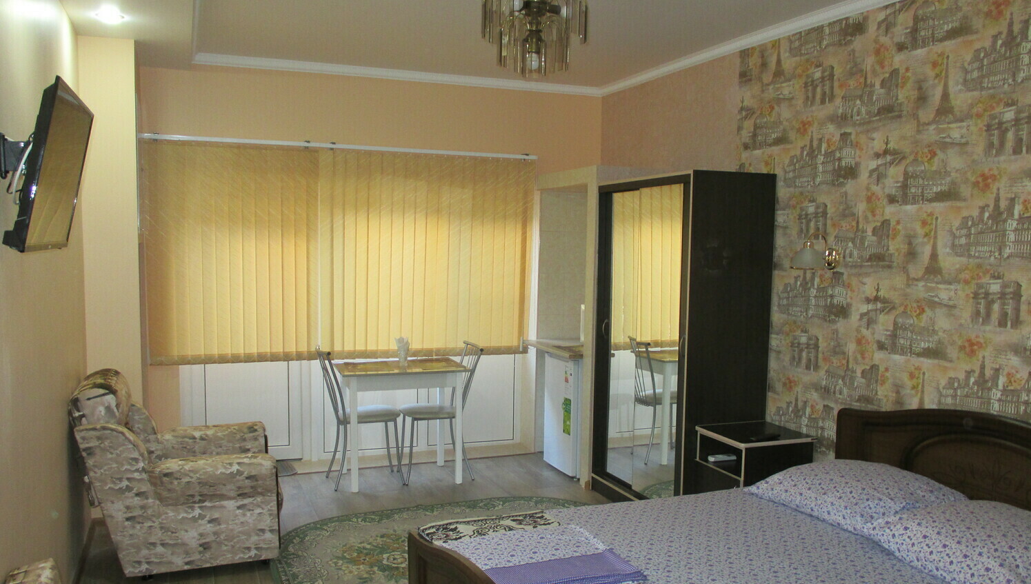 В номере есть: диван раскладной, кресло раскладное, двухспальная кровать, стол, 4 стула, кухонный уголок, кондиционер, телевизор,Wi-Fi, ванная комната.