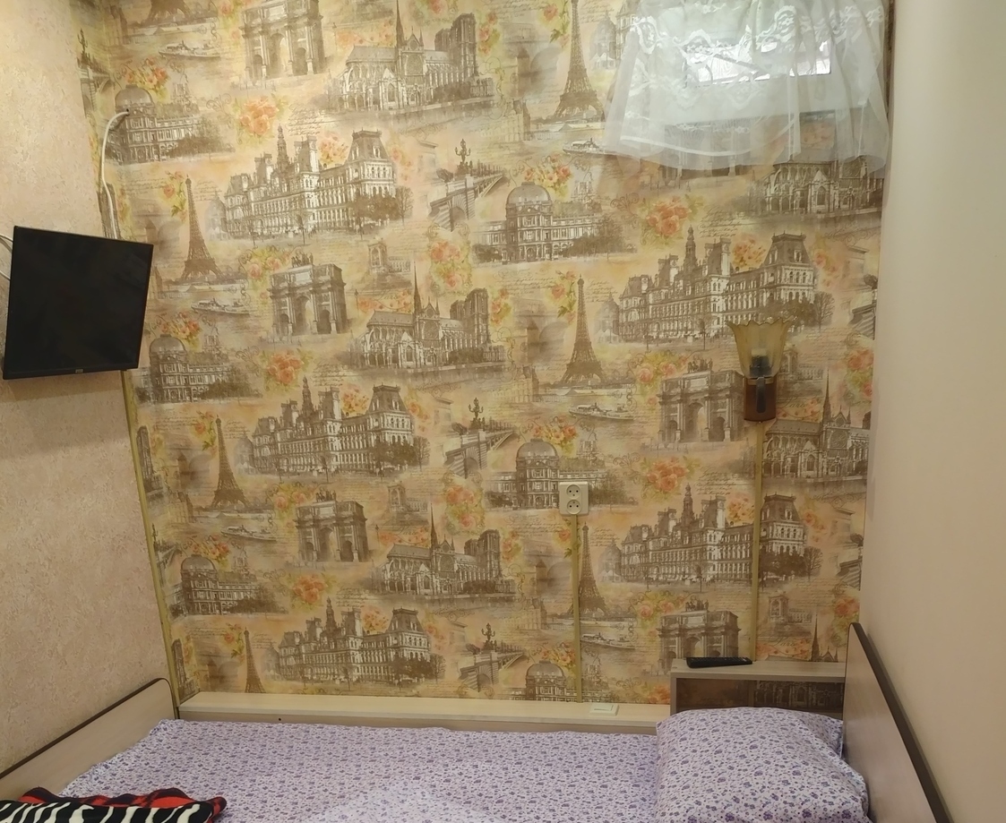 Одна двуспальная кровать, ТВ-ЖК и собственная ванная комната в коридоре.
